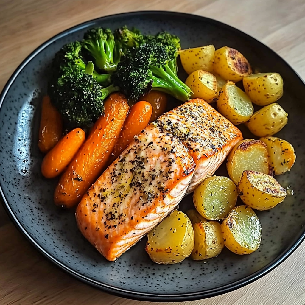 Best Side Dishes for Garlic Butter Salmon with Roasted Potatoes, Glazed Carrots & Steamed Broccoli