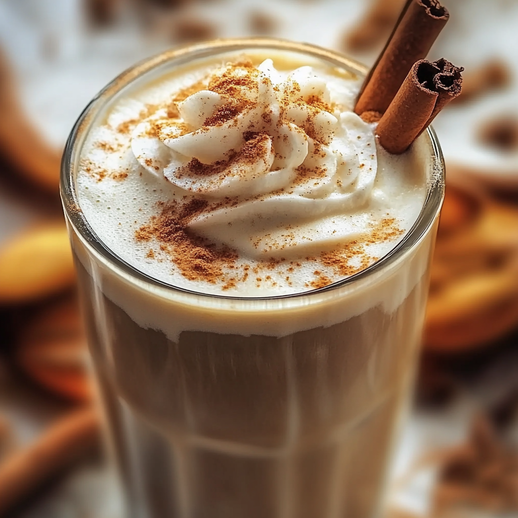 3. Fill a glass with ice and pour the blended mixture over it. For an extra touch, top with whipped cream and a sprinkle of pumpkin pie spice before serving.